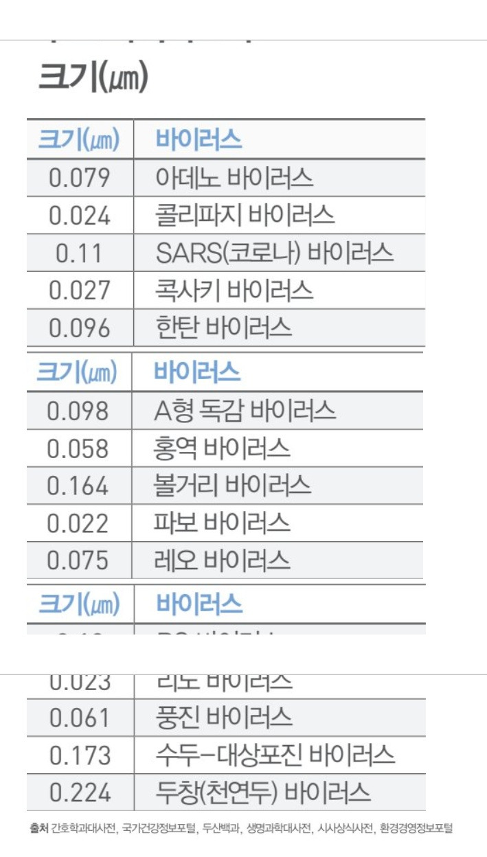 먼저, 담배연기의 유해 물질의 종류와 크기를 말씀드렸고 다음은 바이러스의 크기를 살펴보기로 합시다.