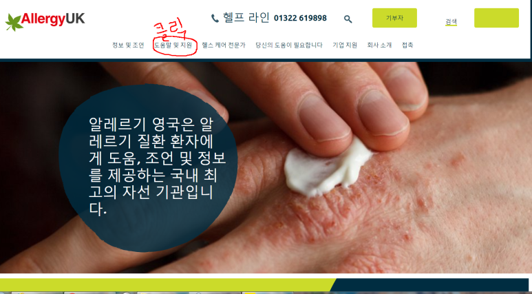 영국 알레르기 재단 홈페이지에 들어가기 전에 구글로 접속 후에 들어가시면 한글 번역으로 보실 수 있습니다.