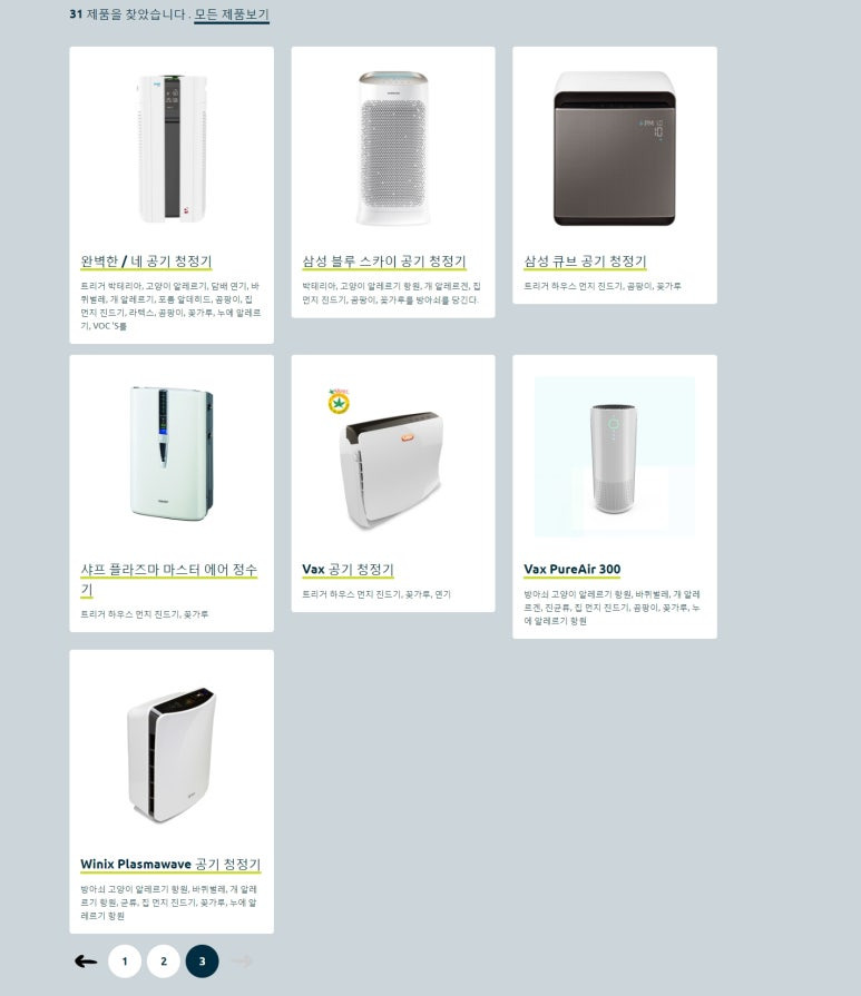 이 재단에서는 각종 가전 기구에 대해서 알레르기 유발 물질에 대한 정화 능력을 보여주는 것이 있습니다.