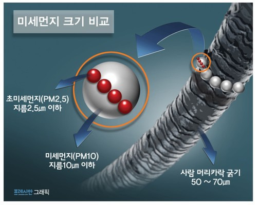 미세먼지는 크기(마이크로미터/㎛)에 따라 초미세먼지(PM2.5)와 미세먼지(PM10)으로 구분